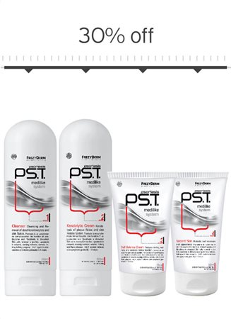 30% OFF our complete Psoriasis Treatment range, including PS.T. Cleanser Step 1 & PS.T. Keratolytic Cream Step 2 & PS.T. Cell Balance Cream Step 3 & PS.T. Second Skin Cream Step 4